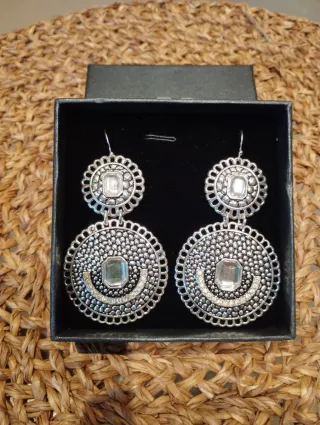 Pendientes grandes plateados con piedras