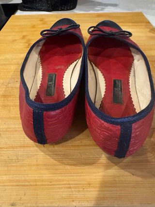 Elegantes zapatos planos de piel. - Diseño bicolor en rojo y negro. - Detalle de lazo en la punta. - Interior con logo de la marca. - Piel tatuada de CH Carolina Herrera. - Tacón 1 cm. - No se admiten devoluciones.