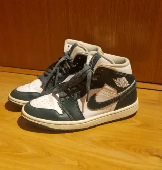 Zapatillas deportivas altas Nike Air Jordan. - Diseño en color verde y blanco. - Talla 37.5.