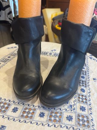 Botines bajos de piel con un diseño moderno y versátil. - Material: Piel. - Color: Negro. - Cierre de cremallera lateral. - Tacón 5 cm. - No se admiten devoluciones.