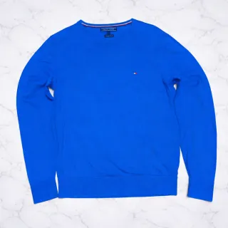 Jersey de manga larga de la marca Tommy Hilfiger. - largo 65cm, ancho 48cm, mangas 64cm - Color azul vibrante. - Logo de la marca en el pecho. - Cuello redondo.