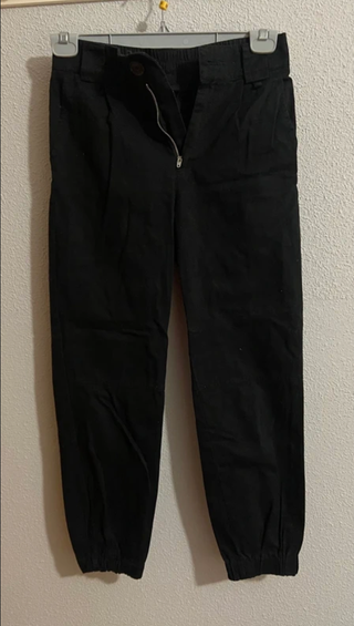 Pantalones jogger negros de Stradivarius, talla XS, con bolsillos a cada lado de la cintura y dos bolsillos traseros, ademas de posibilidad de poner cinturón.