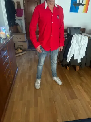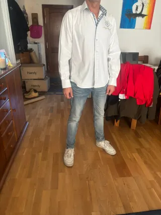 Camisa de manga larga con cuello. - Diseño clásico. - Cierre de botones al frente. - Detalle de logo en el pecho.