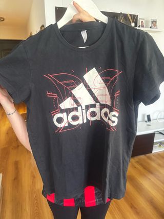 Camiseta Adidas Negra con Diseño Talla M