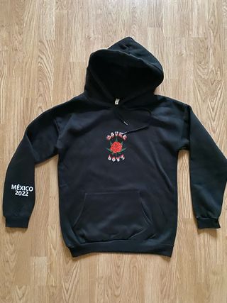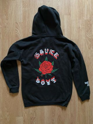 Sudadera negra con capucha Sauce boyz y una rosa en el centro Mexico 2022 en la manga Talla M Nueva sin estrenar
