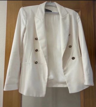 Elegante blazer de Zara en color blanco. Un clásico que no puede faltar en tu armario. - Diseño de doble botonadura. - Solapas clásicas.