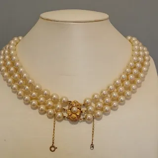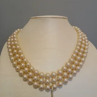 Collar de perlas triple con broche dorado