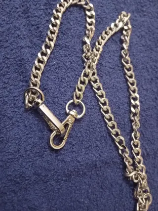Cadena de estilo moderno, ideal para colgar utensilios como. Las llaves Su diseño es elegante y funcional. - Acabado plateado brillante. - Cierre de mosquetón. No es acero inoxidable es metal que pega el imán de ahí su precio.
