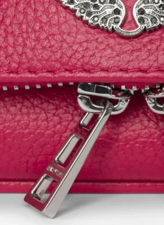 Bolso bandolera de piel con cadena. - Diseño elegante y versátil. - Cierre de cremallera. - Detalle de corazón en la cremallera.