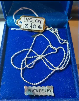 El precio mostrado es el de venta en nuestra tienda. El precio de este producto en nuestra página web puede ser diferente. Este artículo está disponible en nuestra tienda de Barcelona. cadena oro 18k 22cm CC001_E1799745_50 es un objeto que se ofrece en estado excelente. Todos nuestros productos cuentan con garantía de 3 años y un plazo de devolución de 14 días. Contraste: Si | Peso piedras: 0 | Tipo de oro en kilates: Oro primera ley (oro 18k) | Piedras: 0 | Detalles joya: Cadena oro blanco 18k nuevo de 45cm nuevas | Tipo de cierre: Reasa | Tipo de piedra: Sin piedra | Cm (cerrada): 22 | Genero-tipo: Mujer | Piedra: No | Gra