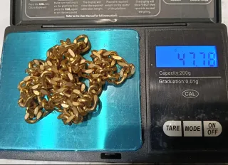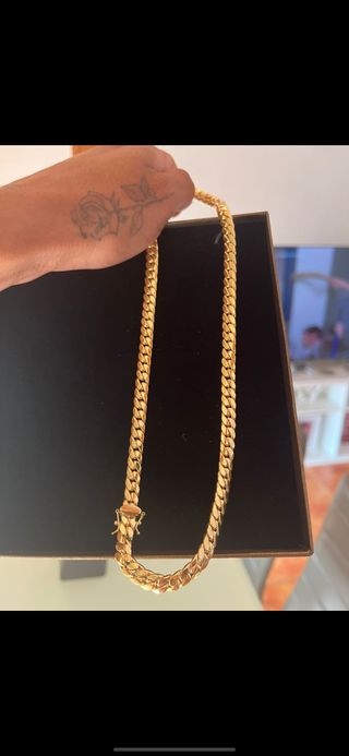 Elegante cadena con un acabado de oro de 22 quilates, chapado premium para un brillo excepcional. - Peso: 47.78 gramos. - Material: Oro 22K (chapado premium).Pongo a la venta esta espectacular cadena con un chapado de Oro de 22 Quilates. Lo que la diferencia es su tono: al ser de 22k, tiene ese color amarillo intenso y rico propio de las joyas de alta gama. Es una pieza sólida con un brillo espejo increíble. Características: Material: Chapado en Oro de 22K de alta resistencia. Tono: Oro puro real (acabado premium). Estado: Nueva a estrenar.