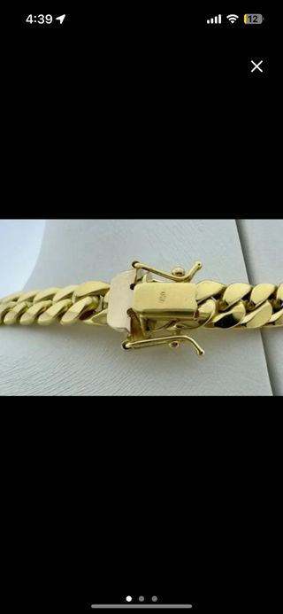 -Cadena de oro de 18k con cierre de mosquetón. ---------------------------------- ¡Peso y tallajes! ---------------------------------- -Peso: 8,15 gramos -medida: 46cm de largo en abierto y 4mm de ancho. ---------------------------------- --------------- -Kilataje: 18 Kilates, (750) --------------- --------------------------------- -Somos tienda fisica, Tenemos mucha variedad de stock en oro preguntar para mas informacion Hacemos envio a Toda España 🇪🇸 y (Compramos oro) desde 70 euros el gramo.