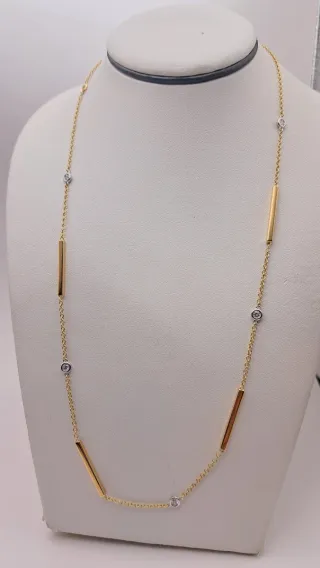 cadena SUAREZ de oro de 18 quilates con detalles de diamantes. - Diseño moderno con eslabones y barras.REF.26566 ENTRE JOYAS calle Ercilla 35 Bilbao peso y medidas en las fotos - Pequeños diamantes engastados a lo largo de la cadena.