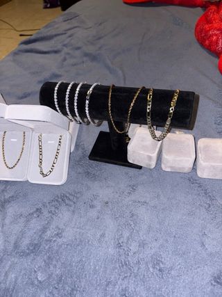 Cadenas. Estilo cordón y otro. En su caja a estrenar NO LEER #CadenasDeOro #JoyeriaOro #Oro #CadenaOro #JoyasOro #Joyeria #Joyas #CollarOro #Accesorios #Bisuteria #SegundaMano #Wallapop #Vendo #Oferta #Moda #PlataYOro #JoyeriaSegundaMano #Cadenas #GoldChain