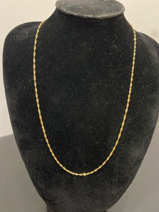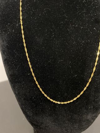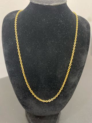 Referencia: AUC251554N2 Puedes reservar tu joya por 90 días, abonando el 15% del valor (solo en tienda). Marca: Sin marca Estado: De ocasión. Peso: 1.62grs Largo: 53cm Contraste: Si Kilataje: 18K Grabaciones: Sin Grabaciones Información adicional: El estado de las joyas pueden ser revisadas en la fotografías. Cambios solo en tienda física. (No devoluciones) Estamos en: Calle Alcalá 359 (28027-Madrid) Nuestro horario es de lunes a viernes de 10:00 a 20:00 en horario continuo, sábados de 11:00 a 16:30 y domingos cerrados.