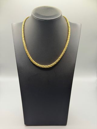 Elegante cadena de plata de ley 925 con un baño de oro. Su diseño trenzado le da un toque especial. - Material: Plata de Ley 925. - Acabado: Baño de oro.