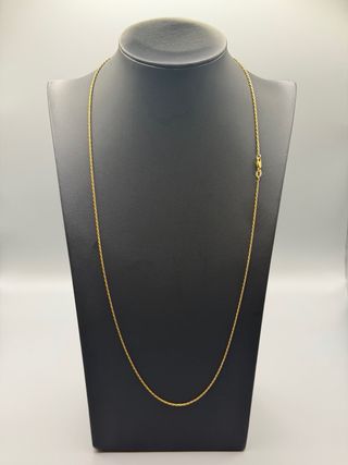 -Cadena de oro de 18k, tipo cordón. ---------------------------------- ¡Peso y tallajes! ---------------------------------- -Peso: 4,67 gramos -medida: 63,5cm de largo en abierto y 2mm de ancho. ---------------------------------- --------------- -Kilataje: 18 Kilates, (750) --------------- --------------------------------- -Somos tienda fisica, Tenemos mucha variedad de stock en oro preguntar para mas informacion Hacemos envio a Toda España 🇪🇸 y (Compramos oro) desde 70 euros el gramo.