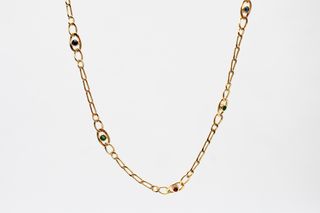 Elegante cadena de balines en oro laminado de 14 quilates. Un accesorio clásico y versátil. - Diseño de balines. - Acabado brillante.