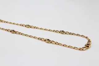 Elegante cadena de oro de 18 quilates. - Diseño de eslabones robustos. - Detalles grabados en los eslabones centrales.