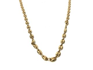 Elegante cadena de oro de 18 quilates con un diseño fino de eslabones tipo grano de café. - Material: Oro 18k - Tipo de eslabón: Grano de café - Acabado: Fino