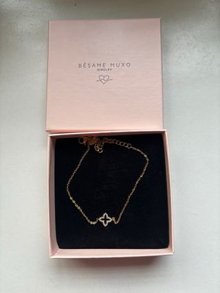 Preciosa pulsera de la marca Bésame Mucho. - Diseño con forma de trébol. - Detalle de circonitas brillantes. - Cadena fina y elegante.