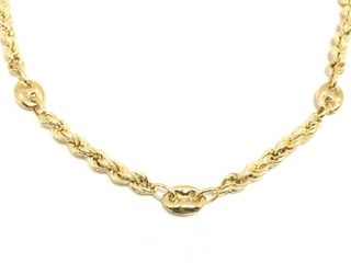 Collar de diseño llamativo y atemporal, estilo marinero o de calabrote, conocido por sus eslabones ovalados con una barra central. Es una pieza de gold filled (oro laminado), un material de alta calidad y resistencia que no debe confundirse con el chapado simple. Características Principales Material: Gold Filled (Oro laminado de 14k ) Estilo: Eslabones marineros hinchados/abultados, un diseño clásico que aporta un aspecto audaz. Durabilidad: Con los cuidados adecuados, este tipo de joya puede durar muchos años (más de 5 años con uso normal). Uso: Ideal para llevar sola como pieza central o combinada con otras cadenas y colgantes