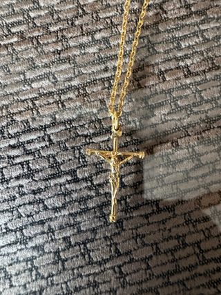 NO CONOZCO SU PESO, SE VENDE A ALGUIEN QUE LE INTERESE EL PRODUCTO EN SI, NO VENDERLO EN UN COMPRO ORO. Vendo conjunto de cadena y cruz de oro macizo de 18 quilates, ideal para hombre. Adquirida recientemente, se adjunta el importe de la web, en total costo 758€ (la rebajo 100€). 🔹 Cadena de oro 18k • Diseño clásico y elegante • Perfecta para uso diario o para ocasiones especiales 🔹 Cruz con Cristo de oro 18k • Tamaño: 23 mm • Estilo tradicional y muy bien definida 💎 Estado: excelente, muy poco uso 💎 Material: oro auténtico 18 quilates 💎 Compra en joyería (precio original elevado)