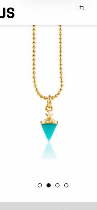Colgante de la marca Tous con baño de oro sobre plata ley y piedra turquesa. Solo se vende el colgante. - Diseño con forma de cono y estrella dorada. Modelo tack. Con cadena su precio inicial era de 129 euros con cadena. Se vende SOLO el colgante. Por ello el precio. Leer bien antes de comprar. Gracias.