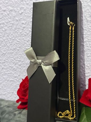 Elegante cadena con baño de oro, presentada en una caja de regalo. - Diseño de cordón retorcido. - Cierre de mosquetón.