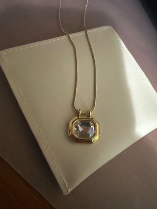 Cadena colgante de la marca Lotus. Dorada, parece un baño de oro pero no estoy seguro. Colgante con piedritas brillantes que la mayoría se han caído.