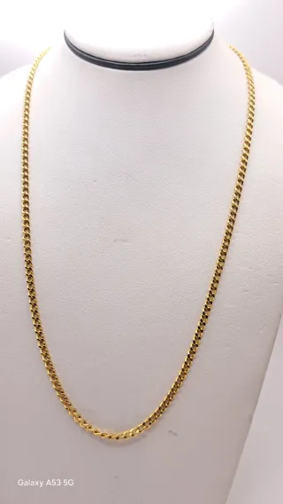 Vendo una Cadena de oro de 18 kilates. La compré el 02/01/2024 en una joyería. - Oro de 18 quilates. - Anchura de 4 mm. - Longitud de 60 cm. - Pesa 9'4 gr. - Cadena Barbada. La vendo porque no la utilizo. P.V.P: 1400€