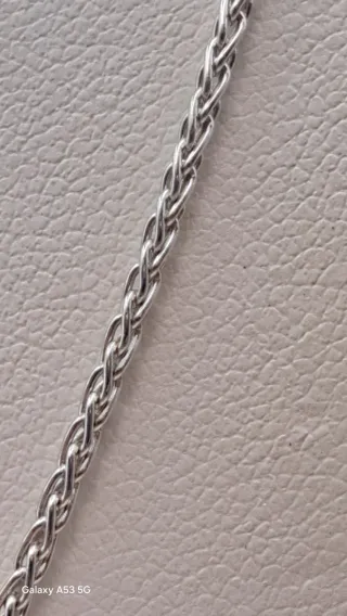 Elegante cadena de oro blanco con un diseño clásico y refinado. Perfecta para complementar cualquier atuendo , comprada joyeria marguin en bilbao , me costo mas de 2000 euros , no marear , no la vendo a peso , ni por mil ni por 1300 , no marear. 12-13 gramos - Material: Oro blanco. - Tipo de cierre: Mosquetón.