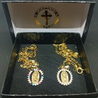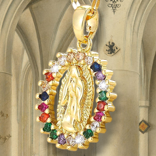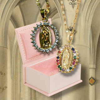 Conjunto de 2 collares con colgante de la Virgen Milagrosa, rodeados de circones. - Baño de oro. - Cadenas incluidas. - ESTUCHE MINI BIBLIA INCLUIDO. Perfectas como complementos o para decoración de su espacio de rezo y oración. # recuerdo cuadro pared iglesia católica virgen maría Jesucristo Jesús dios ortodoxa iglesia religión biblia semana santa creyente procesión santo busto imagen incienso jarrón adorno aceites esenciales difusor aroma ambientador salón dormitorio mueble mobiliario mesita mesilla madre padre cómoda escritorio bonito cama virgen de Fátima Guadalupe san José del Rocío santiago catedral Belén evangelio caliz