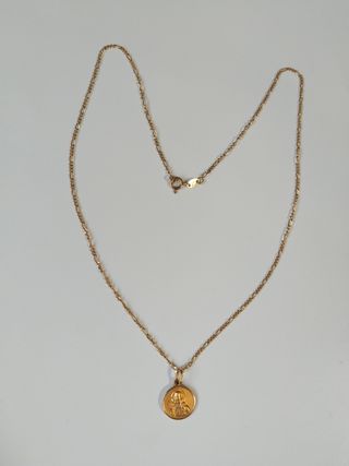 Preciosa cadena de oro con una delicada medalla. Es una pieza elegante y sutil, ideal para un regalo especial o para añadir un toque de distinción a tu estilo. - Cadena fina de eslabones - Medalla circular con un diseño religioso. - Material: Oro 18 kt - Peso 3,85 gr - Medidas total cadena de extremo a extremo 45 cm - Medida medalla 1,5 cm diámetro
