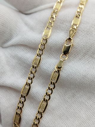 Preciosa cadena de oro de 18 quilates. Es una pieza delicada y luce increíble. Modelo Fígaro 3x1. Grueso 3 mm. Largo 50 cm. Peso 4,05 gr. No baño. Precio no negociable. - Material: oro de 18k - Diseño: tipo Figaro
