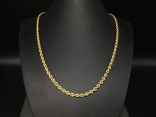 Elegante collar de oro de 18 quilates. - Diseño de cadena tipo soga. - Cierre de mosquetón. - peso 12 gramos - precio 1400€