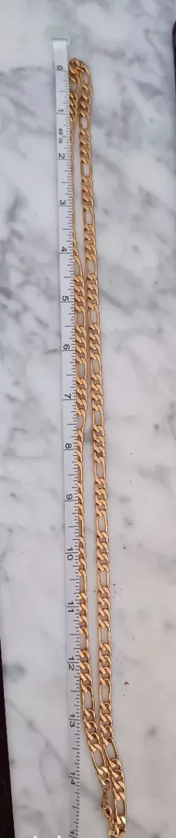 Elegante cadena estilo Figaro chapada en oro de 22 quilates. - Diseño clásico y versátil. - Acabado brillante y duradero.