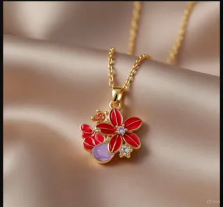 Elegante collar con colgante de lirios chapado en oro de 18 quilates. Un diseño delicado que aporta un toque de color y sofisticación. - Colgante con flores rojas y detalles en circonita. - Piedra central en tono lila. - Cadena fina y resistente. - Resistente al agua - Hipoalergénico - No se estropea - No pierde el color