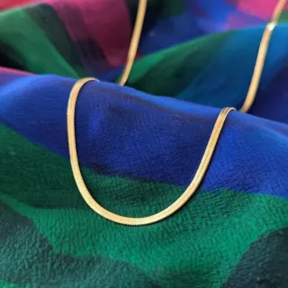 Elegante cadena estilo Snake chapada en oro de 18 quilates. - Diseño plano y liso. - Acabado brillante. Acero quirúrgico chapado en oro 18klt de alta calidad resistente al agua hipoalergénico no se estropea no pierde el color Longitud 50cm