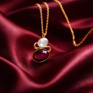 Elegante collar chapado en oro de 18 quilates, con un diseño moderno y sofisticado. - Baño de oro de 18 quilates. - Dos piedras engarzadas: una blanca y otra de color rojo intenso. - Cadena fina y delicada. Acero quirúrgico Resistente al agua Hipoalergénico