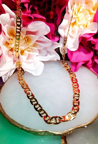 Sin estrenar. Cadena de acero inoxidable 316L (no da alergia, resistente al agua) chapada en oro 18K. Mide 40 cm de largo y 2 mm de ancho.