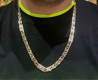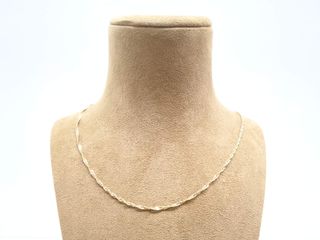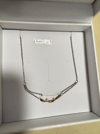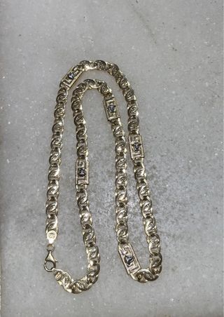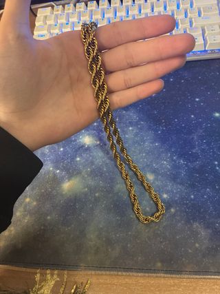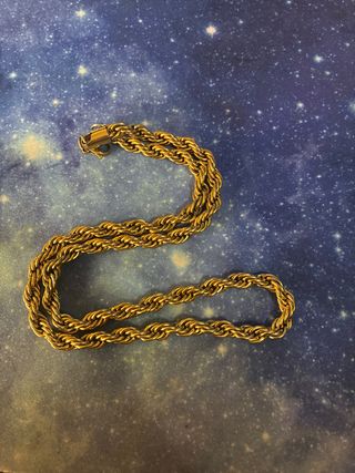 Elegante cadena con un diseño de cordón trenzado.✅ - Acabado brillante.✅ - Cierre seguro.✅ - En buen estado casi sin uso aunque el enganche del cierre se soltó ( el enganche lo tengo ósea que sin problemas puedes ir arreglarlo o pegarlo) Sin ningún daño ni rasguño solamente tiene el enganche suelto✅