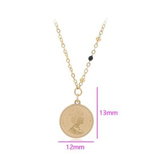 Elegante collar con colgante de moneda. - Material: Acero con baño de oro de 14 quilates. - Diseño: Colgante con detalle de moneda. - Detalle: Una pequeña cuenta negra en la cadena. -Presentación: En bolsa de plástico. - ¡Recíbelo en una caja de regalo por 1€ más! Pídela antes de hacer el pago. - Embalaje de regalo premium: 3€ (Incluye Caja de Regalo + bolsa de asas).