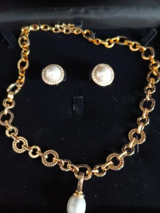 Conjunto collar y pendientes perla y oro