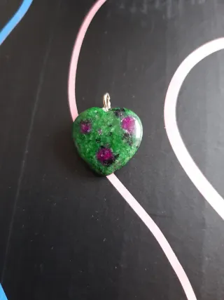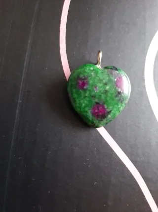 colgante nuevo con forma de corazón, rubí en zoisita mineral natural y anilla oro - Piedra natural con inclusiones de rubí. - Diseño único en forma de corazón 2 cm/2 cm colgante para cadena