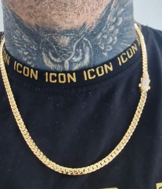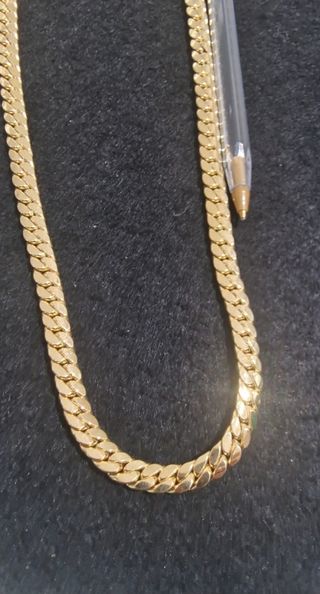 Chapado en oro amarillo de 18 k. Cadena de tienda de estados unidos llamada GLD. Se ha puesto una vez y se vende por falta de uso esta en perfectas condiciones. 3mm de ancho y 28' (71cm) de largo. En las fotos se puede ver las misma cadena en la pagina oficial. Mas fotos o videos por privado!