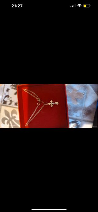 Preciosa cadena con dije de cruz, bañado en oro. Es hipoalergénico. - Material: Oro chapado. - Diseño: Cruz. - Estado: Nuevo.