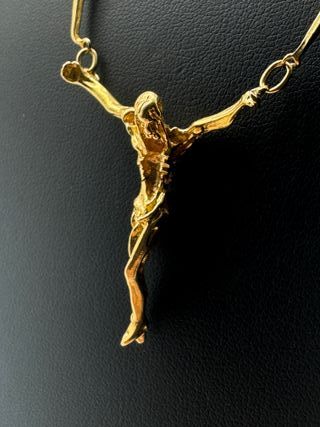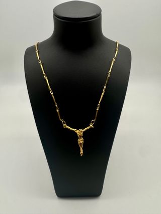 Elegante collar con colgante de cruz chapado en oro. - Cadena de eslabones. - Colgante de cruz con figura de Jesús. NO OXIDA ANTIALERGICO