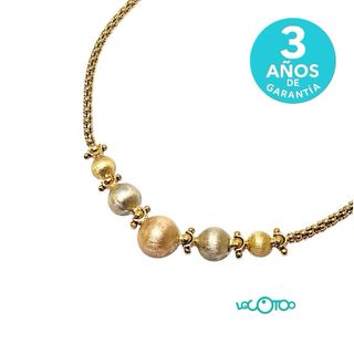 Elegante collar con cadena de oro tricolor y esferas satinadas. Un accesorio que aporta un toque de distinción. - Oro 18Kt. - Peso: 10,3 gramos. - Longitud: 42,5 cm. - Diseño con esferas de acabado satinado. Somos Locotoo Vigo Florida. Nos especializamos en artículos de segunda mano. 3 AÑOS DE GARANTÍA EN TODOS NUESTROS PRODUCTOS. ¡Si estás buscando un chollo acércate a nuestra tienda! Te esperamos en Avenida Florida Nº53 o en el teléfono 986114887. E0489132HG.