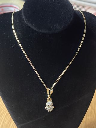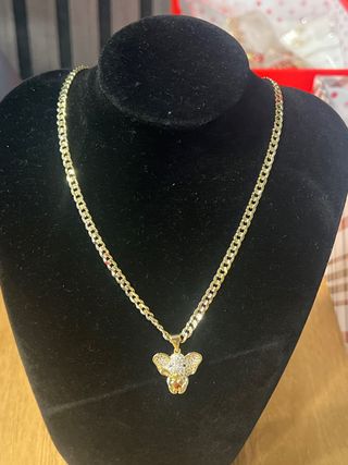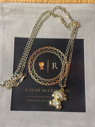 Preciosa cadena con colgante de osito, laminada en oro de 14 quilates. Una pieza delicada y brillante. - Largo de la cadena: 45 cm. - Diseño del colgante: Osito. - Acabado: Laminado en oro de 14K.